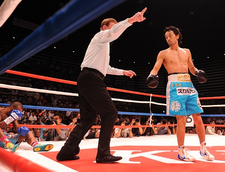 技巧派と目される日本人初の4階級制覇王者、井岡一翔も初回KO防衛をはたしている。11年大みそか、初めて世界王座となったWBCミニマム級タイトルの2度目の防衛戦だった。