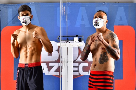 セミ格ではサンフェル・プロモーションズが売り出すS・ライト級オマール・アギラル(メキシコ=17勝16KO無敗)が三浦隆司らと対戦したベテラン、ダンテ“クレージー”ハルドン(メキシコ)と10回戦。アギラル(21)は140ポンド(63.50キロ)、ハルドンは141ポンド(63.96キロ)を計測した。Photos / Zanfer Promotions