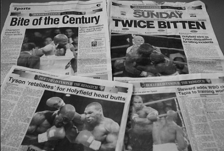 リング外で不祥事を重ねていたタイソンの野蛮なイメージはこの事件でより決定的なものになったと言えるだろう。没落したタイソンがこのあと世界王座に返り咲くことは2度となかった。後年、タイソンとホリフィールドが和解したというニュースに胸をなでおろした。