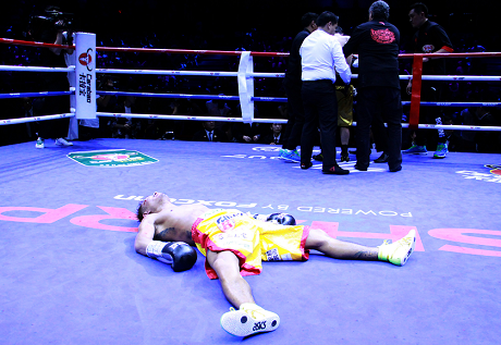 出血で右目の視界が遮られた木村は己のスタミナを信じ、ゾウを攻め続けて終盤に期待をつないだ。迎えた11回、木村は右で王者にダメージを与えるとここぞとばかりにラッシュ。巧みなディフェンスでサバイバルするゾウが、ついにヒザを折ってダウン。立ち上がったものの主審が試合を止めた。TKOタイムは2分28秒。