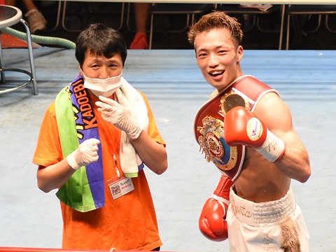 ベルト獲得の山内と阿部トレーナー