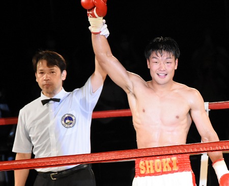 スタートの良くなかった坂井は3回から落ち着いて圧力を強めていった。重田のパンチをブロックしながら徐々に右ショートパンチの精度を上げていく。中盤は坂井のペース。ボディ打ち、右ストレート、アッパーで有効打を重ねていく。落ちてきた重田は終盤、ボディ打ちで反撃のシーンも作ったが、坂井が圧力をかけ続けて押し切った。