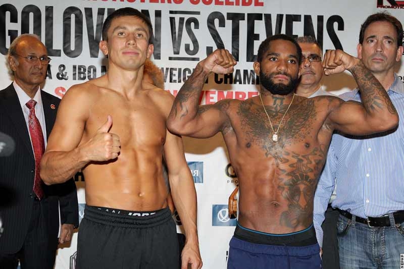 ハードパンチャー同士の対決で興味津々のWBA世界ミドル級タイトルマッチが明日2日(日本時間3日)ニューヨーク・マジソン・スクエア・ガーデンのシアターで挙行される。1日行われた計量で王者ゲンナジー・ゴロフキン(カザフスタン=27勝24KO無敗)は159.6ポンド(72.39キロ)、挑戦者カーティス・スティーブンス(米=25勝18KO3敗)は159.25ポンド(72.23キロ)を計測。リミットの160ポンドをクリアした。