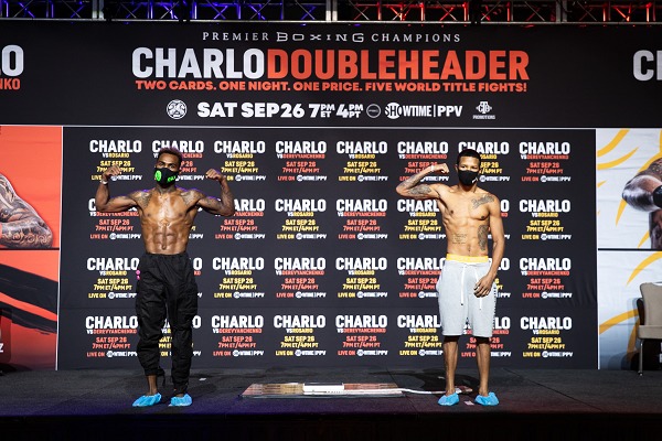 あす26日(日本時間27日)米コネチカット州アンキャスビルで開催される興行の第2部のメインは、チャーロ双生児兄弟の弟WBC・S・ウェルター級王者ジャーメル・チャーロ(米=33勝17KO1敗、30歳)vs.WBAスーパー・IBF統一王者ジェイソン・ロサリオ(ドミニカ共和国=20勝14KO1敗1分、25歳)による3冠統一戦。チャーロは153ポンド3/4(69.74キロ)、ロサリオが153ポンド1/2(69.63キロ)をマーク。リミット154ポンドをクリアした。