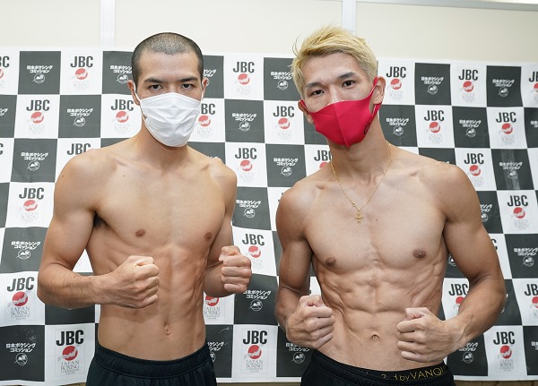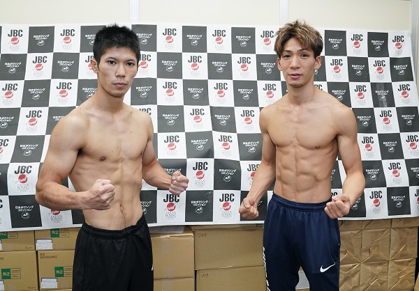 計量を終えた尾川(右)と西谷。KO決着となるか