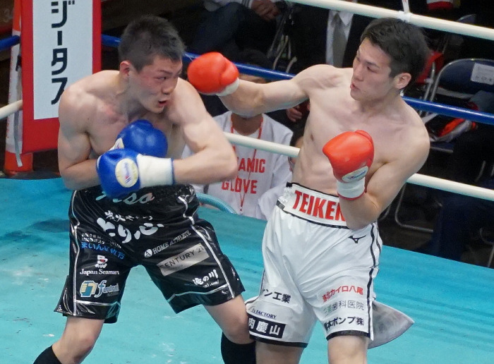 細野が乱戦に巻き込むべく3回に一層プレッシャーを強めた。ここで細野とジョンの頭がぶつけり、ジョンが右まゆの上あたりをザックリとカット。ドクターチェックをへて試合は続行され、試合は打撃戦へと突入したがここまで。再度のドクターチェックをへてレフェリーが試合を終わらせた。細野はまずまずのスタートを切っただけに、残念な結末だった。ジョンは48勝22KO3分。細野は23勝17KO2敗1分。