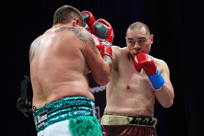 同じくヘビー級10回戦で中国期待のヂャン・ヂレイ(WBO12位)がデビン・バルガス(米)に4回49秒KO勝ち。戦績を22勝17KO無敗とした。Photos: Ed Mulholland / Matchroom Boxing