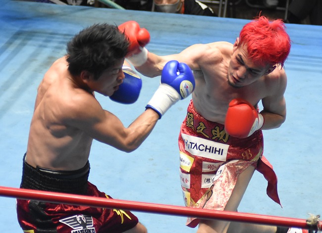 要所で有効打を決め、キャリアの差を見せた35歳の田中は20勝10KO8敗。最後まで下がらず奮闘した22歳の高田は8勝3KO6敗2分。
