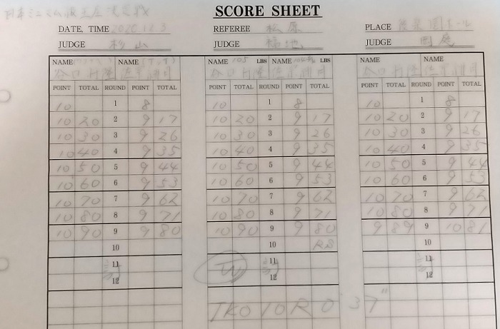 逆転を狙う佐宗は後半、前に出て勝負をかけていくが、谷口は足を使ったり、クリンチで止めたり、佐宗の動きに冷静に対処。無理に倒しにいこうとせず、コツコツとパンチを当てて着実にポイントを獲得していく。佐宗は9回に連打で谷口に迫ったものの、10回に谷口が連打したところでストップとなった。