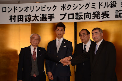 ロンドン五輪ミドル級金メダリストの村田諒太が12日、都内で記者会見し、三迫ジム所属でプロデビューすることを正式に発表した。記者会見には、村田、三迫ジムの三迫会長とともに、帝拳ジムの浜田剛史代表も登壇し、帝拳プロモーションがマッチメークや海外遠征などで全面的に協力することも明らかにされた。