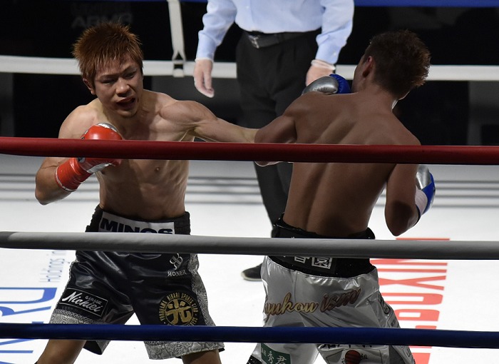 S・バンタム級でIBF12位、WBO13位につける34歳の赤穂が登場。赤穂は中村の動きを冷静に見ながら左ボディ、左フックを打ち込む立ち上がり。2回、左アッパーから右ストレートを鮮やかにヒットし、ロープに中村を追い込むと強打でラッシュ。最後は右アッパーで中村を沈めた。スピードのあった赤穂は36勝24KO2敗2分。中村は11勝8KO6敗1分。