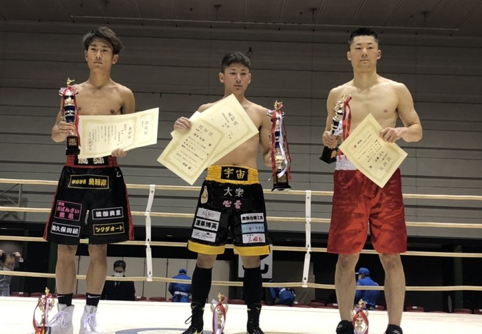 MVPは7勝3KO無敗で四国初の全日本新人王を目指すS・バンタム級、福永宇宙(22=黒潮)が安西蓮(20=岡崎)を3回に右ストレートでダウンを奪い、安西が立ち上がったところに左右フックを浴びせてストップ勝ちして獲得した。