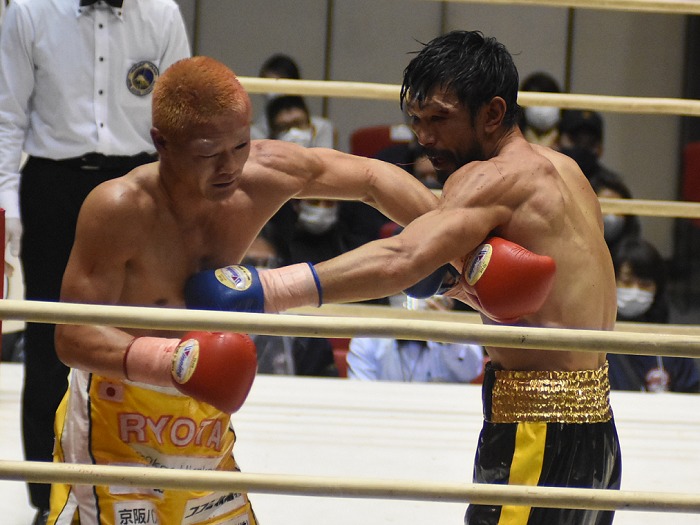 いまはなき名門ヨネクラジム出身、36歳の出田は11年2月、高山樹延に勝って以来9年10カ月ぶりの勝利で引き分けをはさむ連敗を12でストップした。戦績は14勝7KO15 敗1分。矢田は20勝17KO7敗。