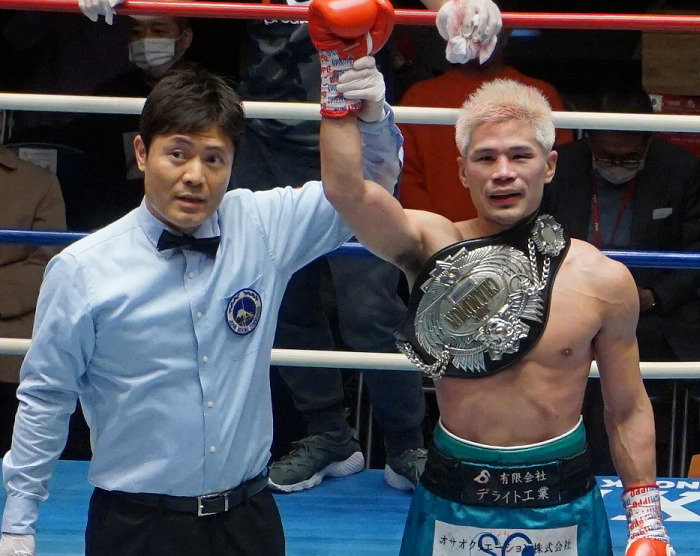 日本S・フェザー級タイトルマッチが22日、後楽園ホール「DANGAN238」で行われ、WBO14位にランクされるチャンピオンの坂晃典(仲里)が挑戦者1位の渡邉卓也(DANGAN AOKI)に6回2分45秒TKO勝ち。初防衛に成功した。