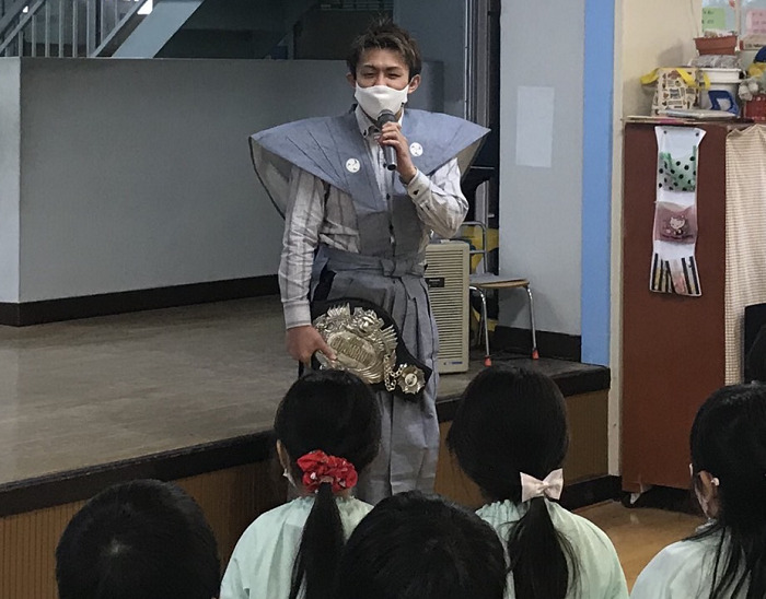 デビュー10連勝(9KO)中の日本ユースS・ライト級王者、佐々木尽(日本同級7位=八王子中屋)が2日、東京・高尾山薬王院で執り行われた「高尾山節分会」に参加。裃姿でベルトを腰に巻き、招福の豆まきを行った。