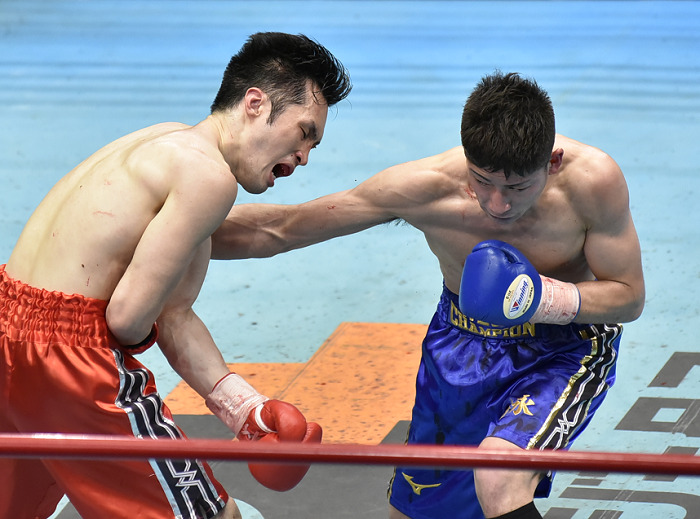 身長185センチの中田が初回、右アッパーを決めるなど攻勢。試合は体をつけた接近戦となり、2回は176センチ可兒がボディ攻撃で中谷迫り、試合は白熱していった。中田は長い腕をうまく折りたたんで接近戦でも器用にパンチを出した。4回はアッパーから右につなげて攻勢をアピール。可兒もよく手を出して前に出続けたが、わずかの差で軍配は中谷上がった。ジム初の全日本新人王に輝いた中田は6勝4KO。可兒は3勝1KO1敗2分。