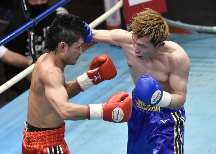 狩俣がグイグイとプレスをかけ左ボディを軸に攻撃。木村は出入りのボクシングをしつつも強気に打ち合って試合は初回から白熱した。狩俣がビッグパンチで迫るかと思えば、パンチの回転力で勝る木村の右カウンターが炸裂してスリリングな展開。3回は両者激しく打ち合い、互いにパンチを受けてダメージを負った。