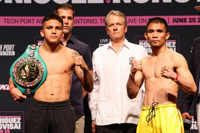 メインに繰り上がったフライ級8回戦は、元王者粉川拓也(角海老宝石)-小坂駿(SUN-RISE)のランカー対決。粉川が50.7キロ、小坂が50.5キロで計量をパスした。