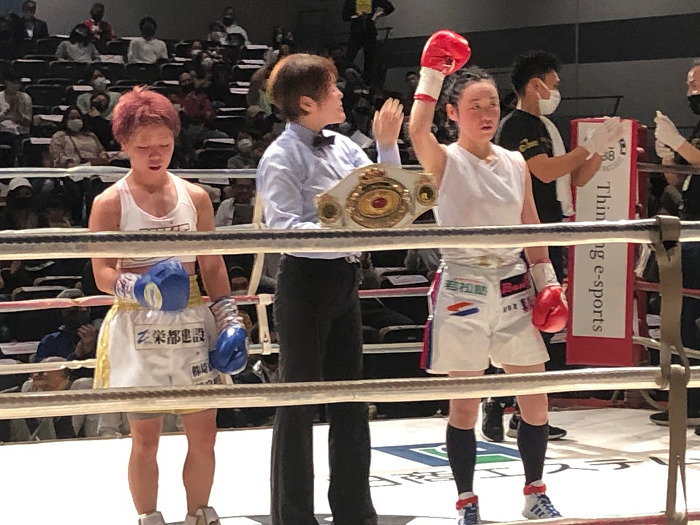 日本女子アトム級タイトルマッチ6回戦は4日、大阪・堺市産業振興センターで行われ、チャンピオン、長井香織(31=真正)が挑戦者の同級5位、樽井捺月(29=山木)に2-0判定勝ちで初防衛を果たした。アンダーカードで元WBO世界ミニマム級王者、山中竜也の妹、山中菫(19=真正)が拓殖大出身でプロデビューの山田夏冴(24=セレス)に判定勝ちして、プロ入り2戦2勝とした。