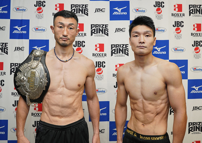 あす8日、後楽園ホールで開催される「ダイヤモンドグローブ」の計量が7日、都内で行われ、メインの日本ウェルター級タイトルマッチに出場する王者の小原佳太(三迫)、挑戦者4位の坂井祥紀(横浜光)がともに66.3キロでリミットの66.6キロをクリアした。
