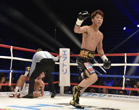 川浦の話「相手は思った通りやりづらい感じだった。こっちをイラつかせようとしていると思ったので、大ぶりにならないよう長いラウンドで仕留めようと思った。バタバタしないでジワジワとプレッシャーをかけようと思った。(昨年12月に福永亮次と中川健太のS・フライ級3冠戦を見て)チャンピオン同士の意地のぶつかり合いを見た。そこを超えなければチャンピオンになれないと思った」