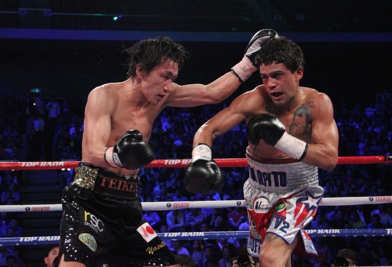 速報 石本がバスケスJrから金星 試合情報(日本語) X Facebook はてブ LINE Pinterest コピー 2013.04.06 雄叫びを上げる石本(奥)。抱き上げる中野トレーナー。手前は敗れたバスケス 6日マカオで行われた興行で、ノンタイトル10回戦に出場した日本S・バンタム級2位の石本康隆(帝拳)が元WBO同級王者で現1位のウィルフレド・バスケスJr(プエルトリコ)に2-0の判定勝ちを収めた。 スコアは96-94、95-94、95-95。石本は8回終了間際に右でダウンを奪った。このダウンが小差の判定勝利を呼び込んだ。PHOTOS/SUMIO YAMADA
