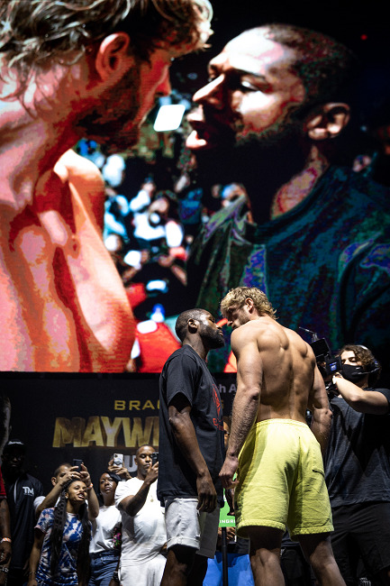 元パウンド・フォー・パウンド・キング、フロイド・メイウェザー氏(米)が明日6日(日本時間7日)米フロリダ州マイアミのハードロック・スタジアムでエキシビションマッチを行う。相手は人気ユーチューバー、ローガン・ポール(米)。5日に行われた計量でメイウェザーは155ポンド(70.31キロ)、ポールは189.5ポンド(85.96キロ)をマーク。両者の体重差は15.65キロもある。