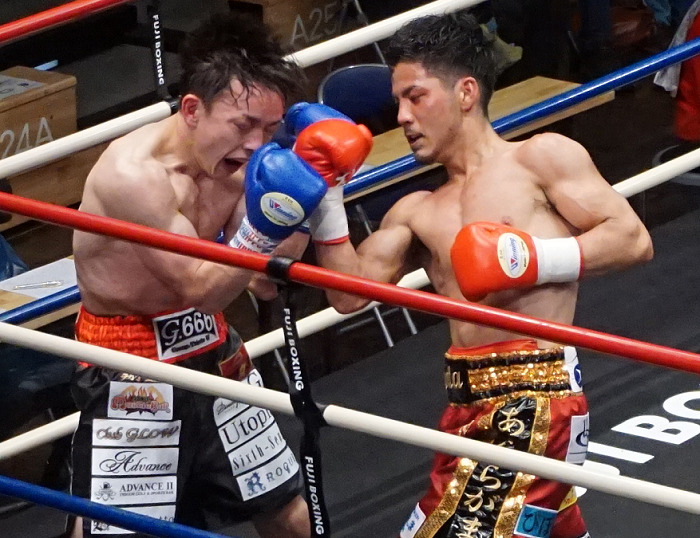 既に顔を腫らしている永田は4回に持ち前の馬力を発揮しかけるが、5回はまた鈴木がコツコツと有効打を重ねた。5回終了時の採点は、鈴木が49-46、50-45×2でリードした。