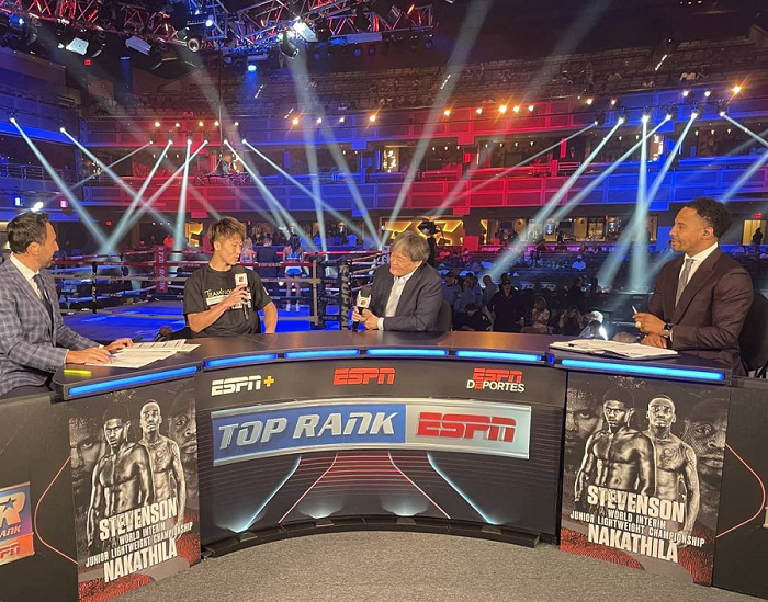 井上はESPNの中継番組で解説を務める元2階級制覇王者アンドレ・ウォード氏と実況のジョー・セトール氏とのやり取りに答え、この模様がこの日のESPN中継で放送されたという。