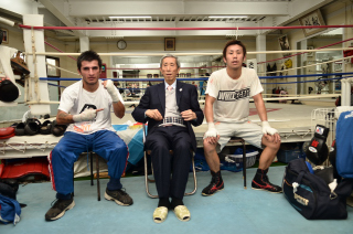 ボクシングを積極的にサポートするコンドルタクシーの岩田寿社長もスパーを見て、「世界挑戦間近の2人。それぞれ世界チャンピオンになってもらい、統一戦でぶつかって欲しい」とエールを送った。