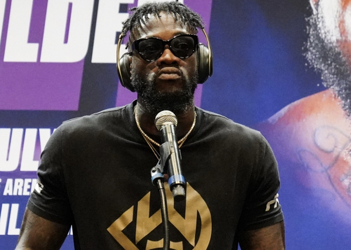 会見は、フューリー陣営がトップランク社のボブ・アラム・プロモーター、シュガー・ヒル・スチュワード・トレーナー、ワイルダー側は新しくコンビを組んだ元選手マリク・スコット・トレーナーが出席。先にあいさつに立ったワイルダーは「7月24日、血祭りに上げる」と語っただけでヘッドホンで音楽を聴きながら沈黙。フューリーとのやり取りはスコット氏が代行した。