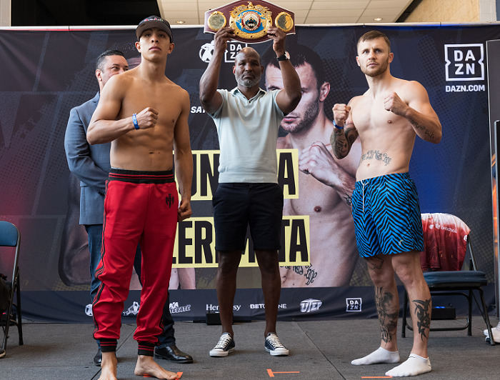 セミのライト級10回戦はメキシカン対決。今回が5試合連続の米国リングとなるランカー、イサック・クルスに元WBC・S・フェザー級王者フランシスコ・バルガスの顔合わせ。クルスは133ポンド(60.32キロ)、バルガスは134ポンド(60.78キロ)をマーク。2人ともアグレッシブなスタイルだけに火花が散りそうだ。