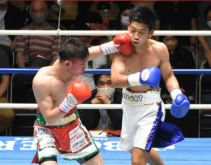 ここを切り抜けた鶴見が踏ん張り、後半はともに手数をよく出して熱戦を展開。永田は鶴見に押し込まれず、より手数を出してあいているところにうまくパンチをヒットし続けた。デビュー戦勝利の永田は国体優勝時、現在大橋ジムで活躍する中垣龍汰朗、松本圭佑の両ホープに勝利している。最後まで闘志を見せた鶴見は5勝2KO4敗1分。