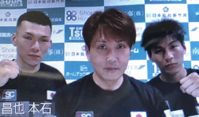 オンラインで会見した左から奥本、本石会長、下町