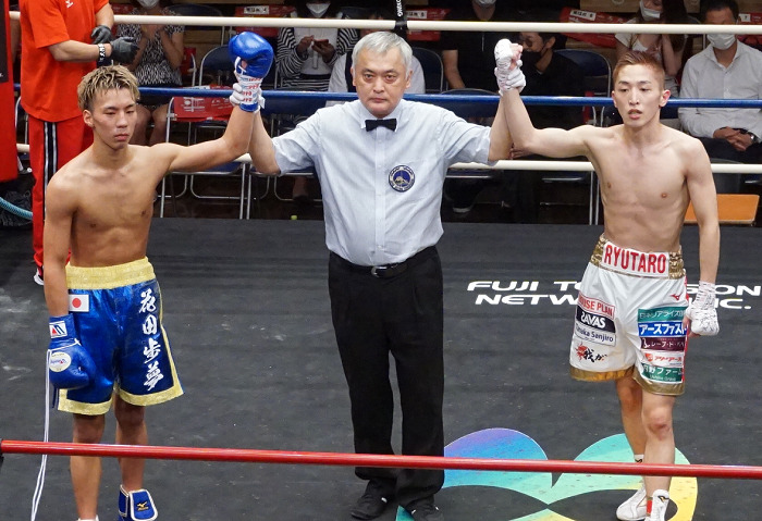 藤岡と挑戦者のウルビナ=竹原&畑山ジム提供