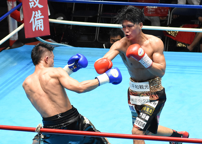 「倒す」と宣言して臨んだ重岡に対し、川満も「打ち合いでは打ち負けない」と言っていた通り、のっけから試合のペースは火がついたように激しいものとなった。