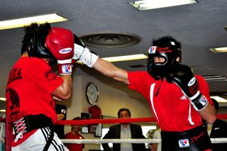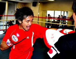 8日のトリプル世界戦を控え、WBCバンタム級チャンピオン山中慎介(帝拳)が2日、都内のジムで練習を公開した。