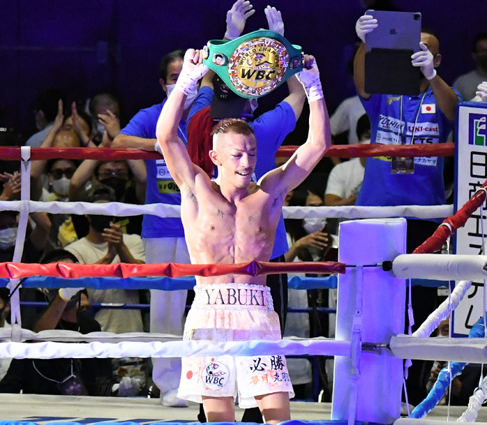 世界初挑戦でタイトルを獲得した矢吹は13勝12KO3敗。目標にしていた日本記録のV14が遠のいた拳四朗はプロ初黒星。戦績は18勝10KO1敗。