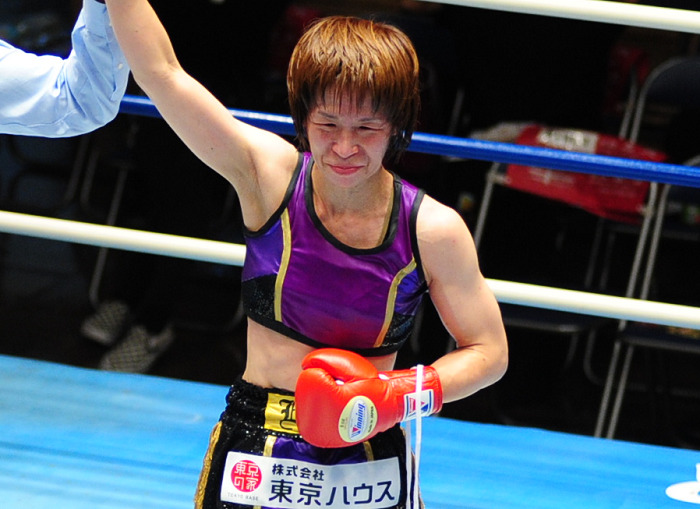 15日後楽園ホールのメインでは元WBO女子ミニマム級王者の江畑佳代子(ワタナベ=45歳)が引退試合に臨んだ。元WBO女子アトム級王者・池山直(フュチュール)と6回戦を行い、3ー0判定勝ち。