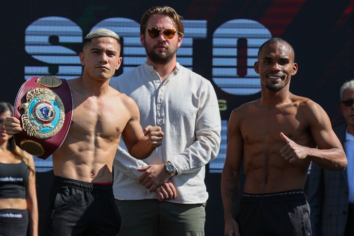 明日16日(日本時間17日)米カリフォルニア州フレズノのチュクサンシ・パークで挙行されるWBO世界L・フライ級タイトルマッチの計量が15日行われ、王者エルウィン・ソト(メキシコ)が107.8ポンド(48.90キロ)、指名挑戦者ジョナサン・ゴンサレス(プエルトリコ)がリミットの108ポンド(48.98キロ)を計測し合格した。
