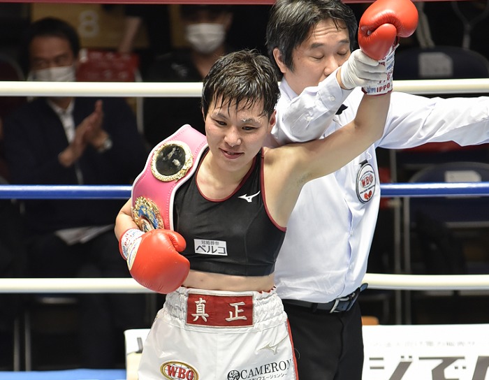 23日、韓国の安山市で行われたWBO女子世界ミニマム級戦は、チャンピオン多田悦子(真正=写真)が挑戦者のティ・トゥ・ニ・グエン(ベトナム)に微妙な10回0-3判定負け。タイトルの初防衛に失敗した。スコアはジャッジ3者が96-94でグエンだった。