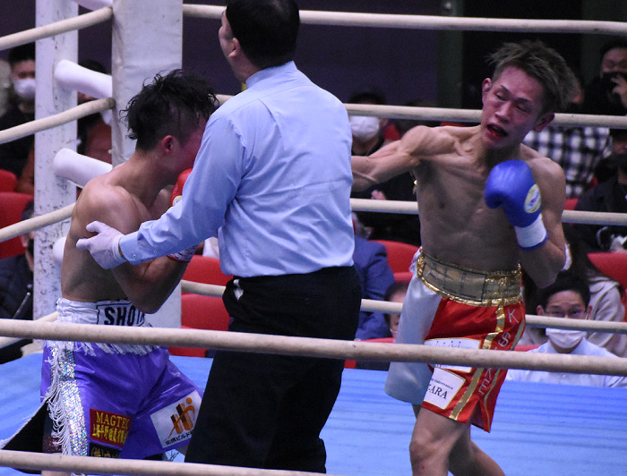 英は2年ぶりの勝利に「強い相手だったが、ジャブでうまく距離がとれた。でも、ジャブからのアッパー、右の連打など練習してきたことは出せなかった。来年は地元の金沢で防衛戦をしたい」と落ち着いて話した。英は9勝3KO2敗3分。