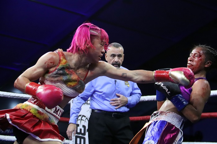 ユースタイトル2度目のチャレンジの英は開始からジャブを突いて前に出た。亀田は右カウンターを狙う作戦で、やや手数が少ない。3回、英の右ストレートがヒット、攻勢をアピールした。亀田はロープを背負って右カウンターを放つが、なかなかヒットできず、焦りが見られた。