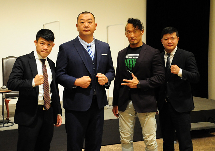 中左がエンタメファイト出場のTKO木下、プロレスラー丸藤
