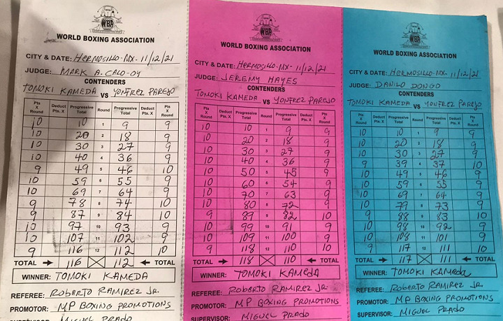 10、11回、亀田は右ストレートを打ち込んだものの、前に出ているのはパレホ。亀田は最終回、足を使ってリスクを回避し、試合終了のゴングを聞いた。