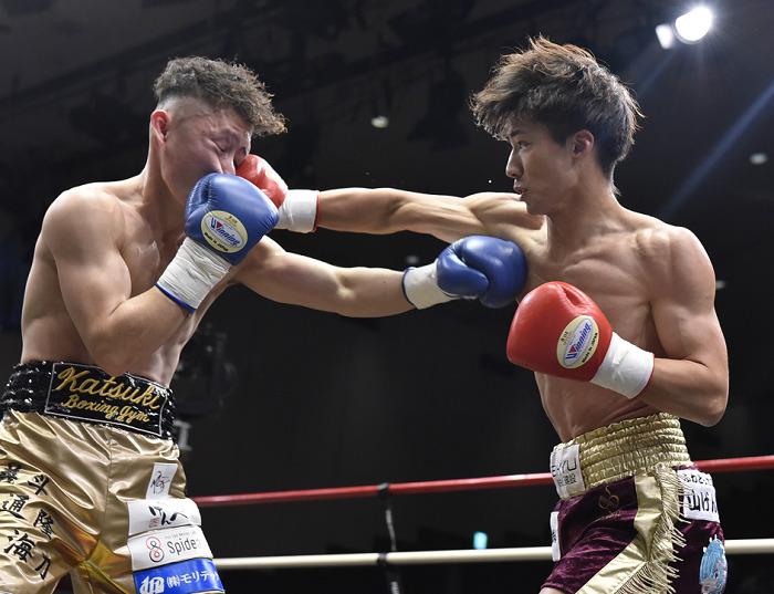 アマチュア出身の湯川はガードを固めて前へ。リーチで上回る福井はさまざまな角度からパンチを打ち込み、湯川のガードをこじ開けにかかった。福井が細かくパンチを打ち込み、スイッチを繰り返す湯川が時折ロープに福井を押し込んでボディ攻撃を見舞うという展開が続いた。