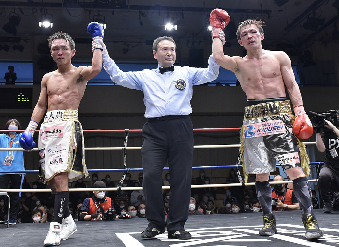 敢闘賞は日本S・バンタム級王者の古橋岳也(川崎新田)が受賞した。古橋は2度目の防衛戦で前王者の久我勇作(ワタナベ)と立場を入れ替えて再戦。強打の久我に前半リードを許しながら、持ち前のスタミナと前に出るボクシングでドロー防衛をはたした。
