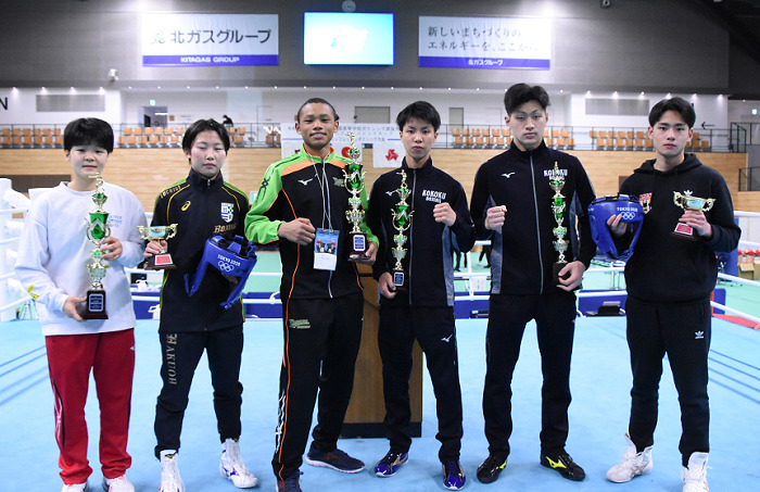 今大会もボクシング強豪校の活躍が目立ち、大阪の興国高は男子の4人が決勝に進出し、伊藤千飛、山口瑠、川渕一統の3人が優勝。総体に続く2冠目を手にした山口は技能賞、ミドル級の川渕は敢闘賞を受賞した。