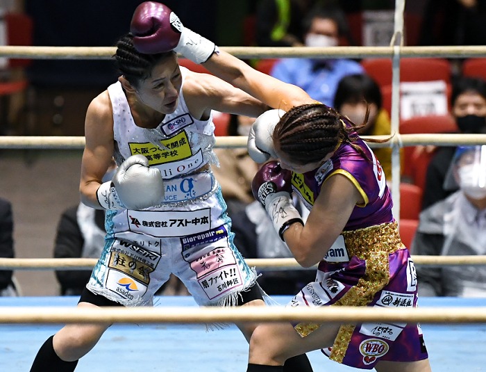 前半5回を終えて明らかにされたスコアは48-47、49-46、47-48の2ー1で赤コーナーの川崎が優勢。試合は近場での攻防が続いた。互いにアッパー、左ボディフックなどでアピールし続けるが、どちらも決定的なチャンスはつかめない。