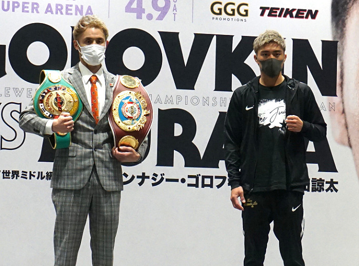 さいたまスーパーアリーナで9日、開催される「Prime Video Presents Live Boxing」の記者会見が7日、都内で行われ、セミのWBOフライ級タイトルマッチと、東洋太平洋&WBOアジアパシフィック・ライト級タイトルマッチに出場する4選手も抱負を語った。会見は村田×ゴロフキンが第1部、それ以外が第2部として行われた。